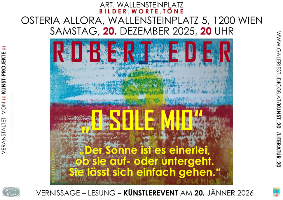 Am 20. Dezember endet die Reihe bilder.worte.töne am 20. Im 20. mit einer Ausstellung und Lesung des Malers und Literaten Robert Eder, der seit 2022 die Osteria Allora rund um Weihnachten bespielt.