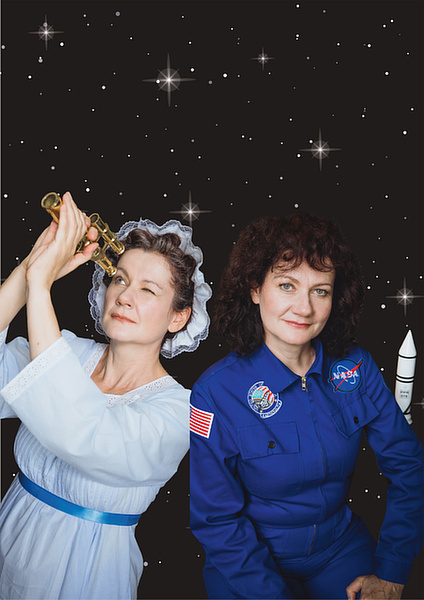 Das portraittheater bringt mit "Sternenfrauen" die Geschichten von vier Pionierinnen der Astronomie und Raumfahrt, die die Weltraumforschung geprägt und verändert haben, auf die Bühne: die Astronomin Caroline Herschel, die Sternforscherin Williamina Fleming, die sowjetische Kosmonautin Valentina Tereshkova und die US-Astronautin Sally Ride. Dazwischen geben Videointerviews Einblick in die Arbeit heutiger Weltraumexpertinnen.