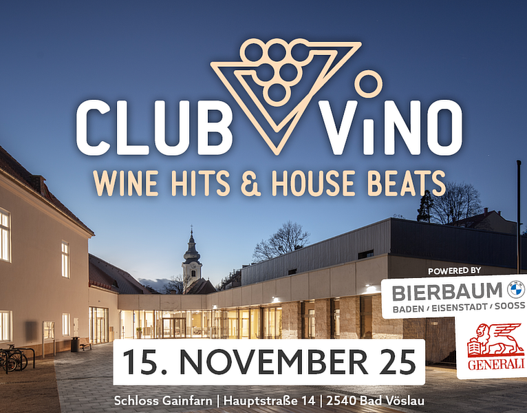 In Kooperation mit der Stadtgemeinde Bad Vöslau ist es uns eine Freude, das neu sanierte und umgebaute Schloss Gainfarn mit einem CLUB VINO Termin zu beehren!