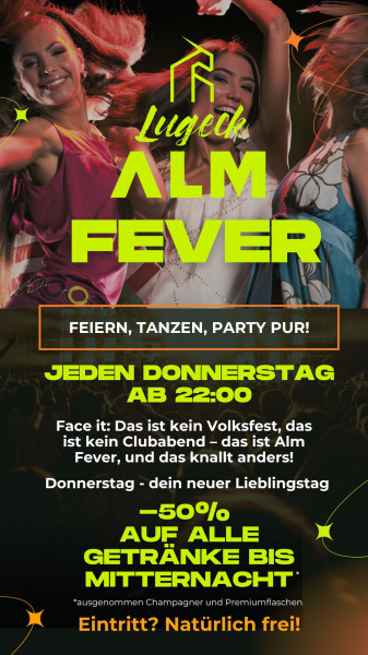 Alm Fever am Donnerstag, dein neuer Lieblingstag Face it: Das ist kein Volksfest. Das ist kein Clubabend. Das ist Alm Fever und das knallt anders. DJs mit Partygarantie - Eintritt natürlich frei!