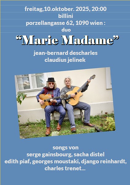Jean-Bernard Descharles und Claudius Jelinek spielen songs von serge gainsbourg, sacha distel, edith piaf, georges moustaki, django reinhardt, charles trenet ...