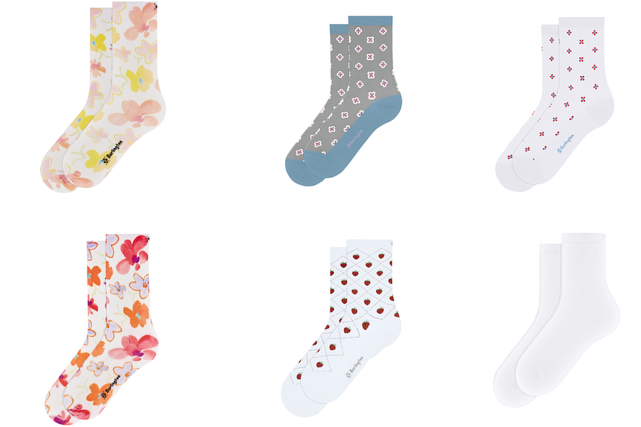 Das Sortiment umfasst Styles mit dezenten Blumenmustern ebenso wie einfärbige Klassiker und wird durch Frottee-Socken ergänzt. Eine abgestimmte Auswahl an Materialien, Farbpaletten und Schnitten stellt vielseitige Kombinationsmöglichkeiten sicher und ermöglicht eine funktionale sowie zugleich stilistisch reduzierte Sommergarderobe.