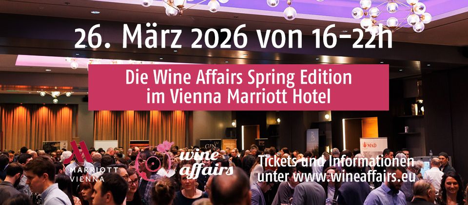 Am 26. März 2026 präsentieren sich großartige Weingüter mit ihren edlen Tropfen bei unserer Wine Affairs Spring Edition im Vienna Marriott Hotel.